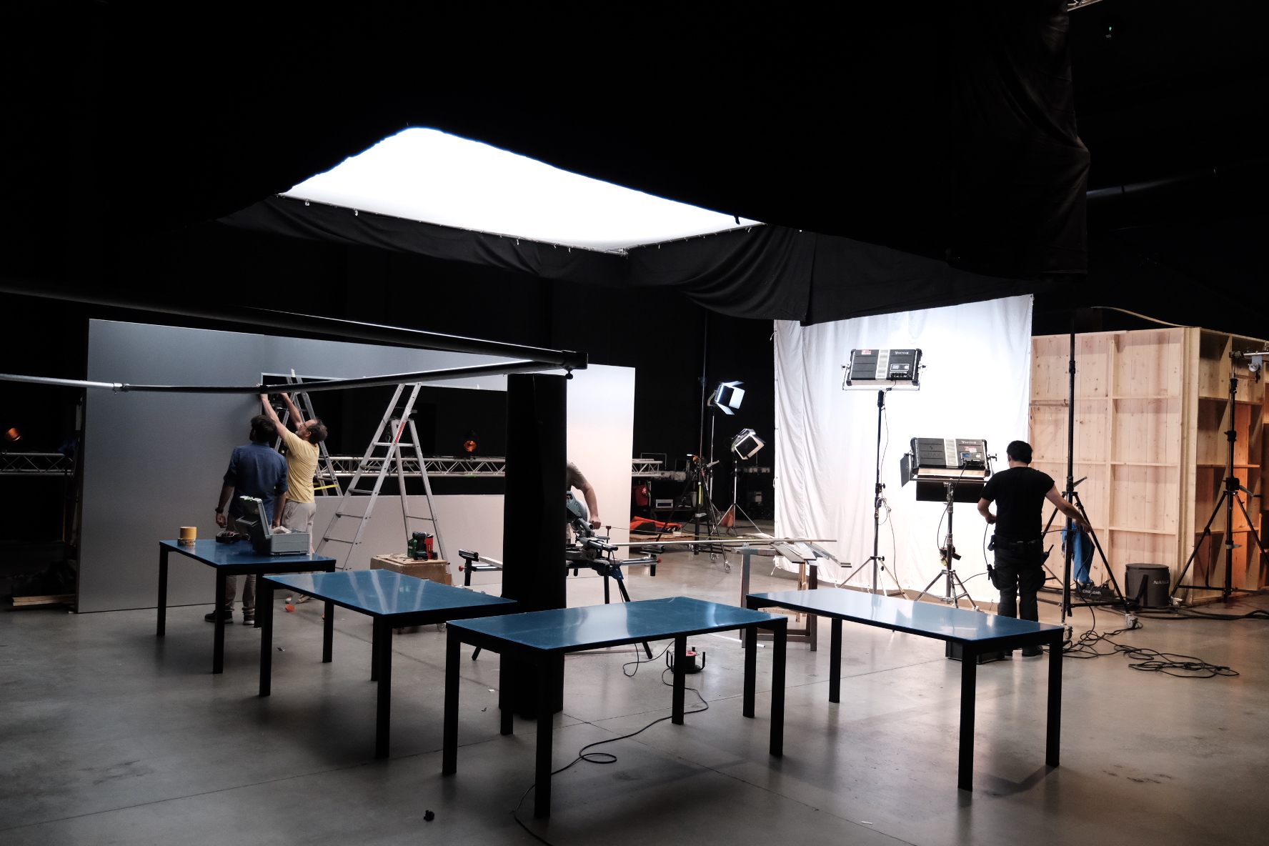 Repérage et autorisations. Équipe technique complète. Régie, logistique, hébergement, catering. Casting. Décors, décoration, stylisme. Matériel technique via nos partenaires locaux et parisiens. Direction de production sur le terrain. Post-production si besoin.